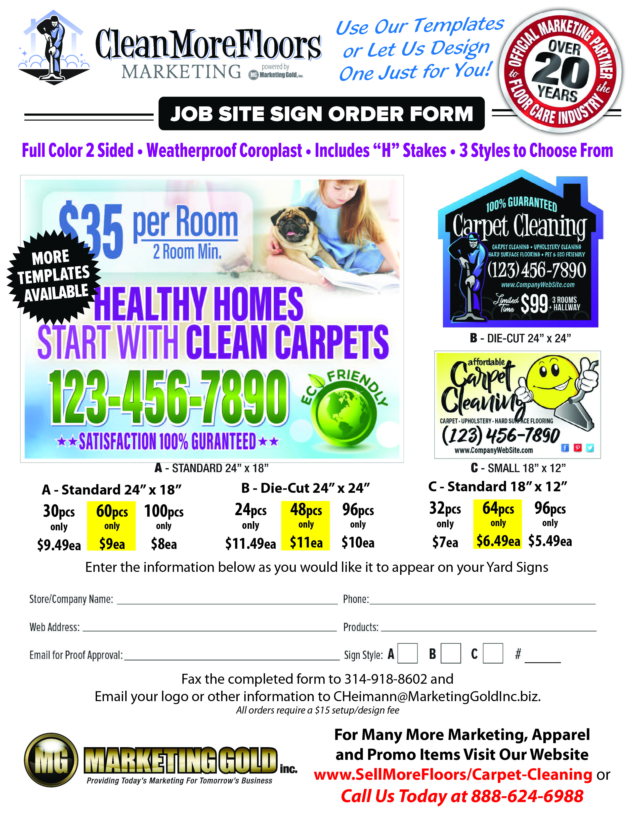 It’s just SMART advertising! Many potential customers are driving by your job sites every day. Make sure your company info is displayed prominently on an attractive Yard Sign at your job sites. Our signs are completely customizable with your company name/info or logo. Use one of our professionally designed templates or let us create one just for you. If you have any questions please contact us toll-free at 1.888.624.6988.