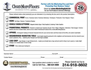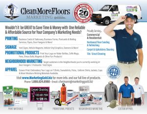 CLEANMOREFLOORS gives you the tools to do business to the best of your ability – the tools to stay in front of your potential customers, to broadcast your business name and brand throughout your market. Below, you’ll find an overview of our product and service offering.